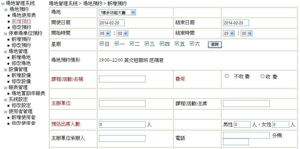 場地預約功能 :